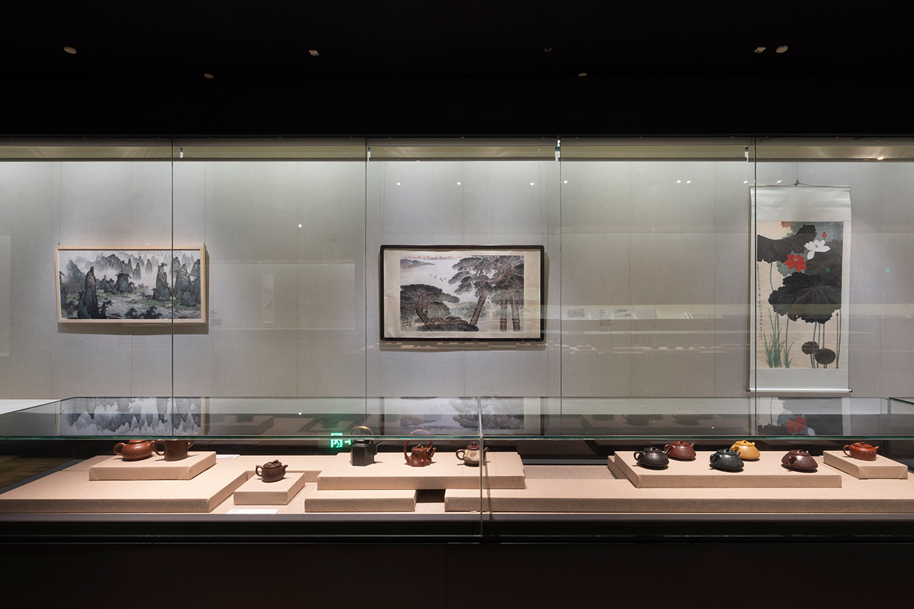 “Charm of Clay, Fragrance of Ink: A Special Exhibition of Masterpieces in Modern Chinese Painting and Yixing Teapots” brings together treasured works by twentieth-century masters of Chinese painting, including Zhang Daqian, Li Kuchan, Huang Yongyu, Tang Yun, Lu Yanshao, Fu Baoshi, Pan Tianshou, Wu Guanzhong, Lin Fengmian, Wu Hufan, Wu Zuoren, Liu Haisu, Bai Xueshi, Xie Zhiliu, Chen Peiqiu, and others. Complementing the paintings and calligraphy, the exhibition also showcases early collaborations between these masters and contemporary Yixing potters, where brush met clay on teapots. This unique fusion allows visitors not only to admire the artistic flair of the painters but also to glimpse a miniature universe within each vessel—a harmonious convergence of art, craft, and culture.
