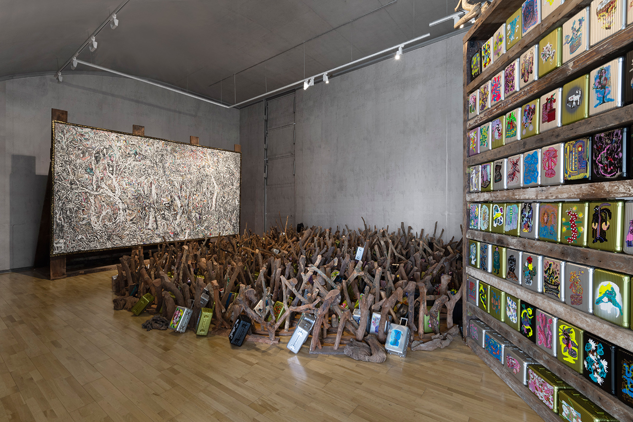 亦如隔层中,那些仿佛藤蔓式的生长空间,成为展览的中心与根茎,它既是展览结构的写照,也是展览情感的比喻,像是陈彧君画中这片朦胧的森林,成为游牧人与浪荡子短暂的家庭,心灵上的居所。