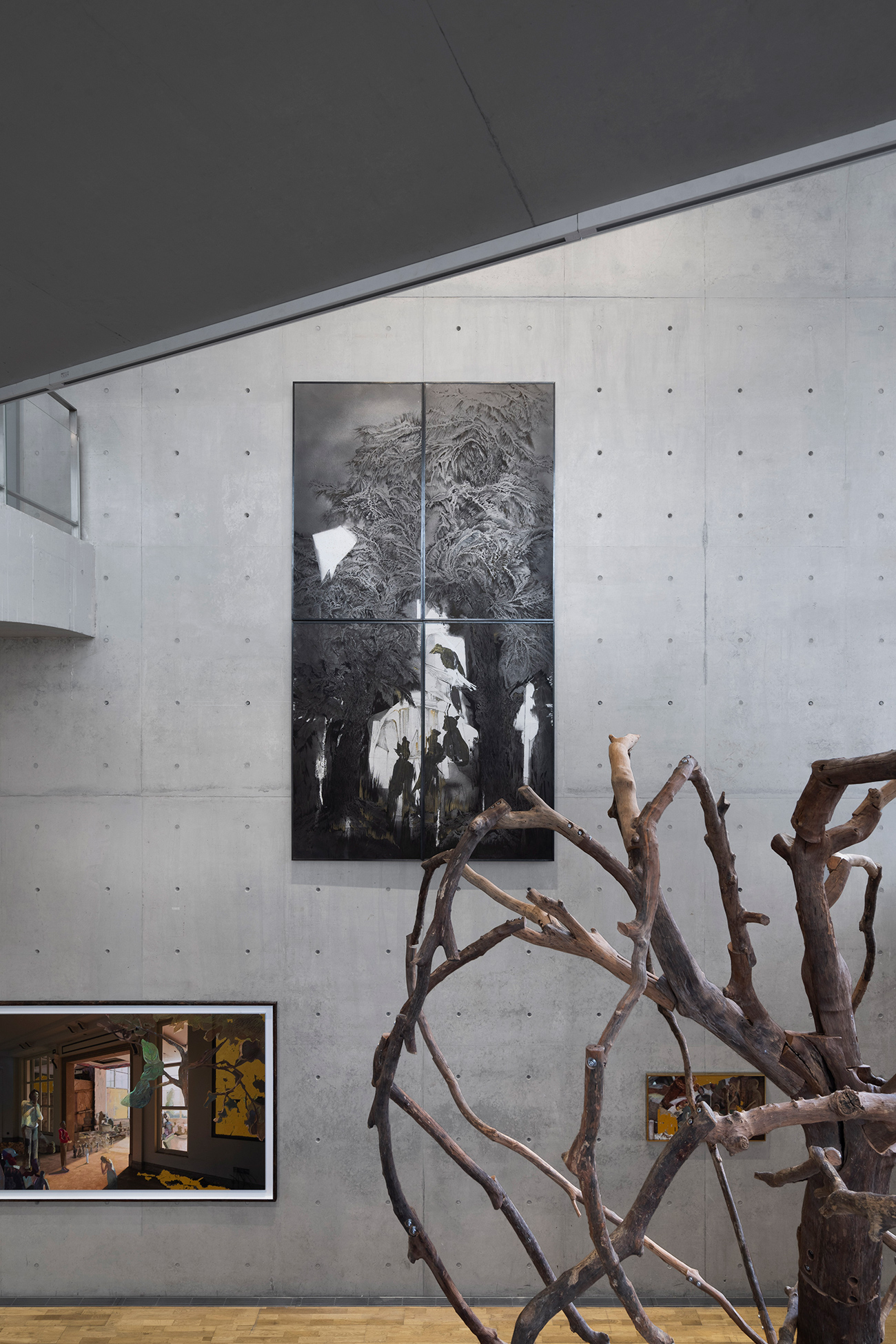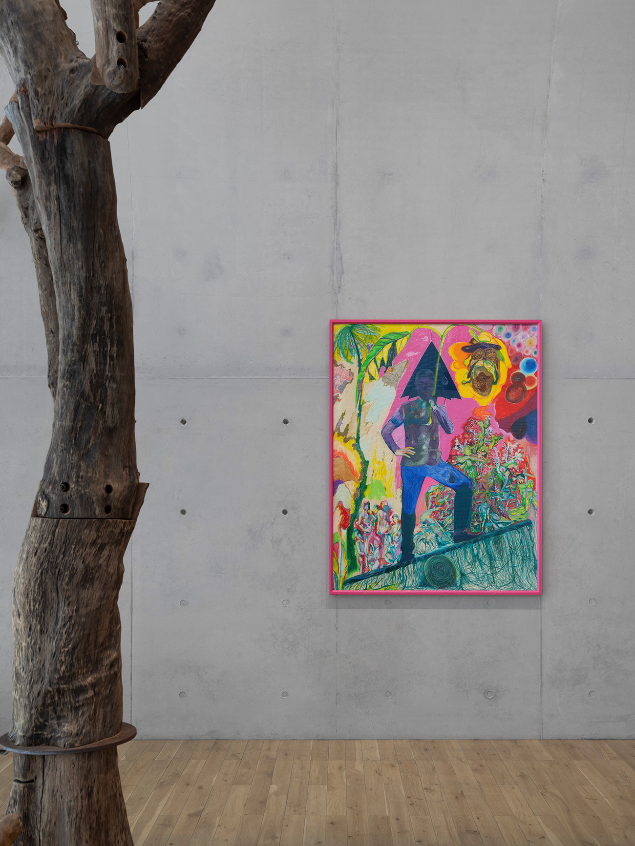 树木系列位于展厅的开篇、隔层与结尾,像是展览中始终游荡的故乡,它提示我们自然中多重空间的存在。雨林中生生不息的故事,它有着比人类更古老的历史,更恒久的生命观。树木也承载了陈彧君童年的记忆与口音,在那条反复被提及的木兰溪旁,矗立着高大的龙眼树。它的树干上长满树瘤、疤节、纹理,残缺的美感,被赋予中国哲学中“以缺为美”和“以无为有”的思想。