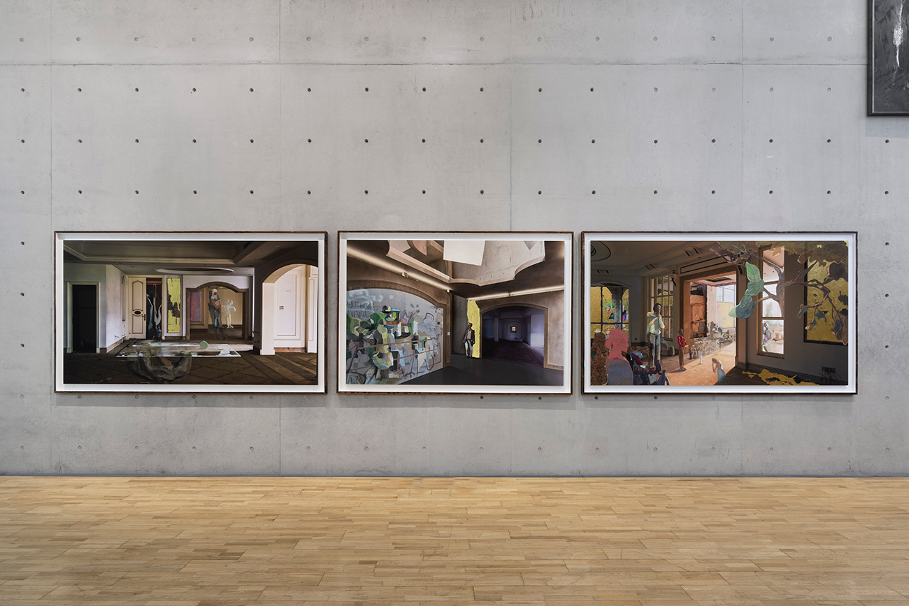 2020年,陈彧君在疫情中停留在浙江横店。在漫长的三个月中,偶然的机会,他跟随朋友去参观当地最豪华的别墅区,其中一栋号称“楼王”的房子,让陈彧君颇为触动。它装修到一半,却已停工。搁置的现场,像是一个时代发展的切片,残存着不久之前人们对家庭、美学与更好生活的想象。这种感受,又映衬着另一段发生:曾经美式风格、法式风格、托斯卡纳风情,遍布中国的街头,它是一个时代在空间中渴望现代化和国际化的见证,也是人们心中的远方与梦想中的他乡,成为《局外人》系列最初的现实灵感。